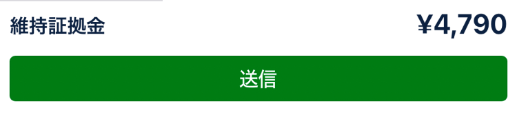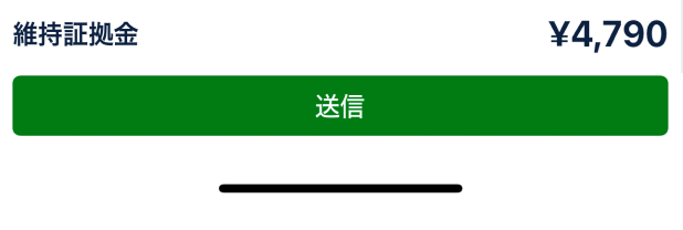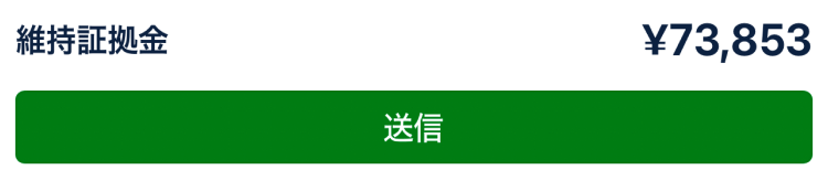 ロット数を指定すると、画面下部にこの取引に必要な資金である「維持証拠金」が瞬時に表示されます。金額を確認したら「送信」をタップして注文を確定します。