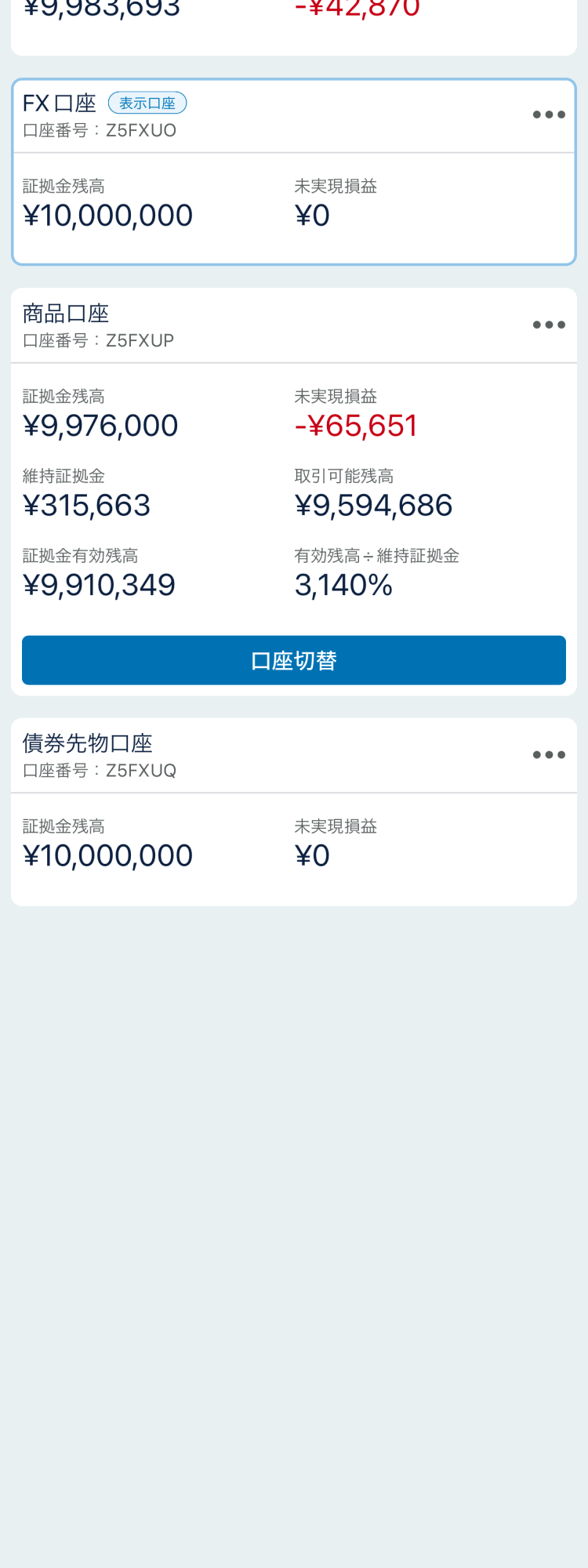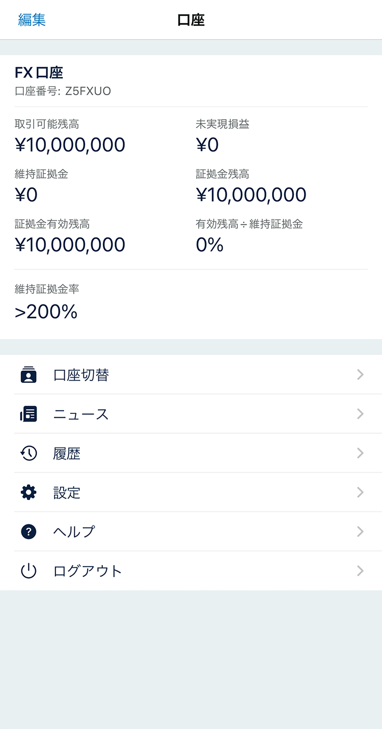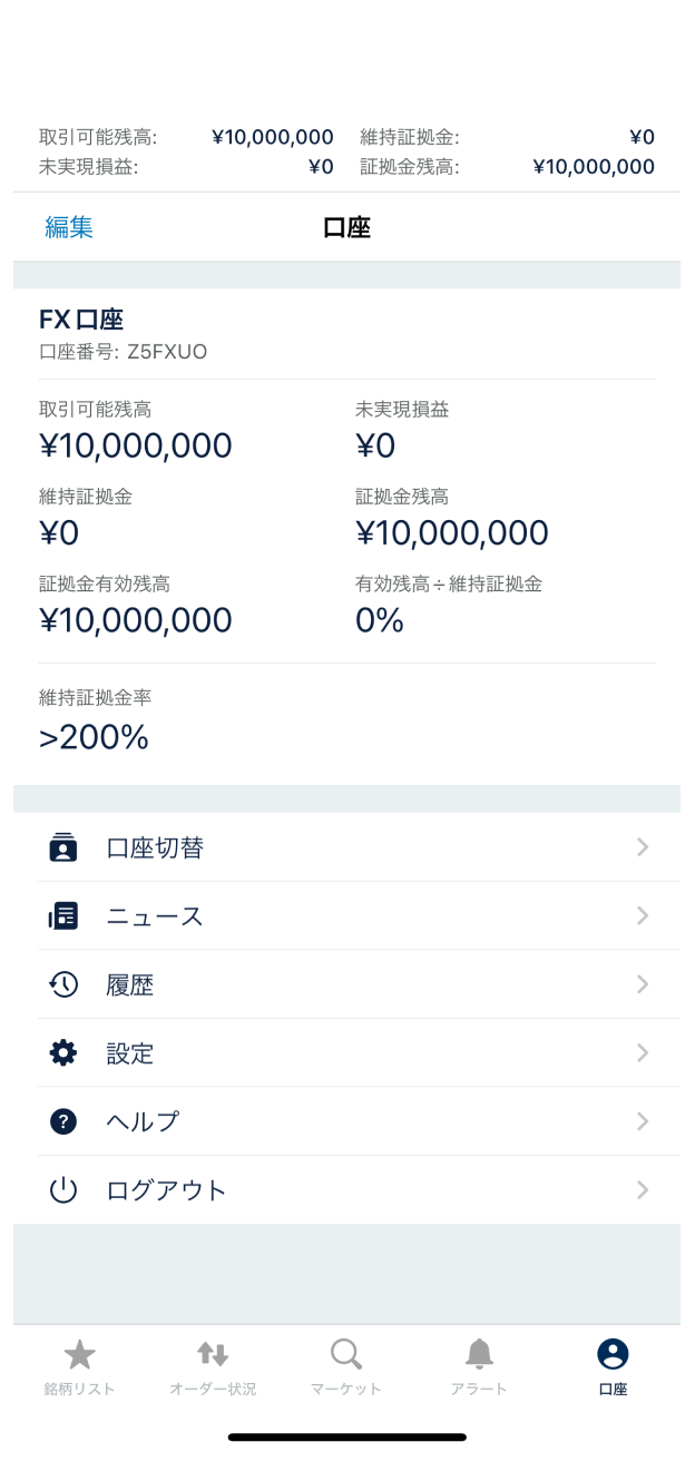 ログイン後は「FX口座」が開きます。
