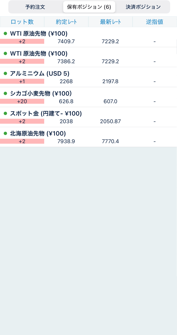 「保有ポジション」のタブを見ると、注文が約定し、買いポジションが保有されたことが確認できます。